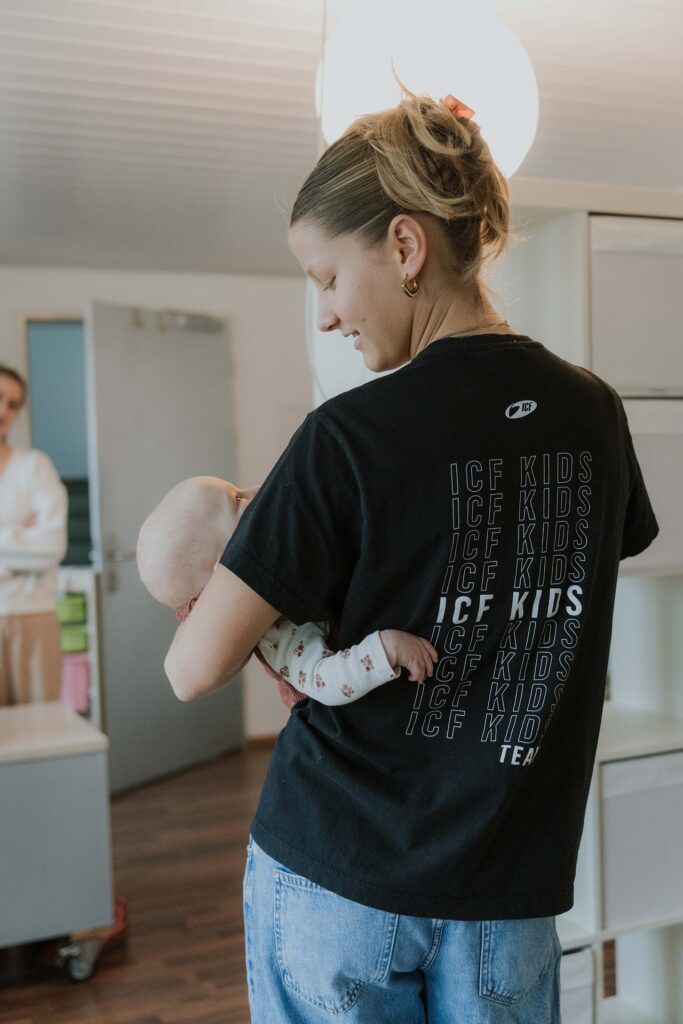 Liebevolle und kompetente MitarbeiterInnen sorgen für das Wohlbefinden der Jüngsten. In kindergerechten Räumen können die Babies schaukeln, krabbeln und mit den ersten Schritten die Welt erkunden. Wir beten für sie und essen einen kleinen Snack. Falls sie ihre Eltern vermissen, können diese dank Multimedia während der Celebration aufgerufen werden.
